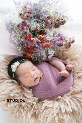 ニューボーンフォト- 等身大フラワーキャンバスプラン –